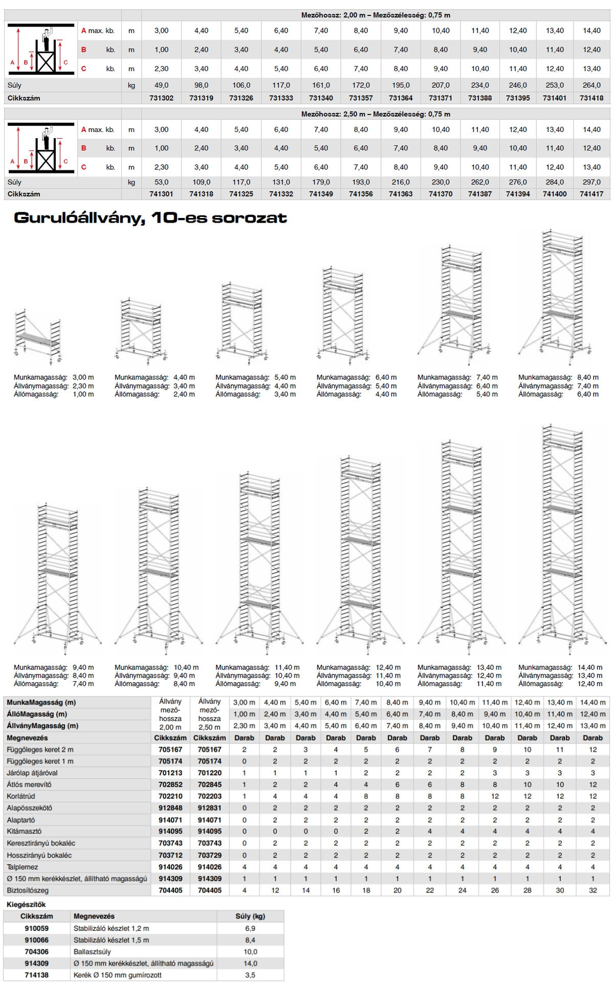 STABILO GURULÓÁLLVÁNY 10-ES SOROZAT JÁROLAPH. 2,00 M MUNKAMAG. 10,40 M