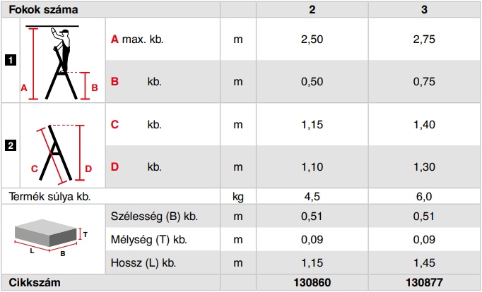 Kis helyigényű alumínium fellépő nagy lépcsőfokokkal a legkülönbözőbb belső munkálatokhoz.